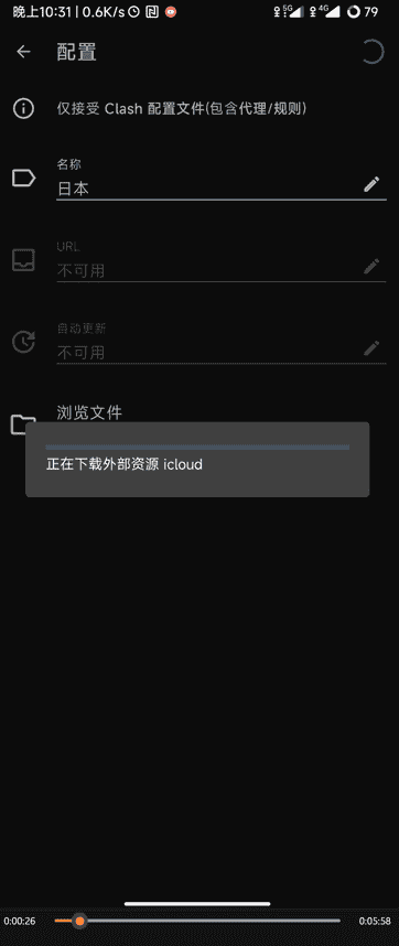 - 此时app会根据配置文件中的规则地址去下载分流规则,视网络情况,第一次导入可能会比较慢